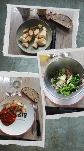 Coucou à Toutes Tout d'abord une pensée et une bonne fête aux Mamies😁 Je suis inquiète de ne pas avoir de nouvelles de Roxane Merci pour l'idée de wrap Scarlet👍. Ça permet de varier ses plats Hier en crudités j'ai refait du fenouil cru avec mâches et pomme Granny et vinaigrette avec moutarde et miel😋 Ce midi je vais préparer une tartiflette mais la mienne sera allégée J'ai préparé ma liste et je vais commencer ma valise car la semaine va vite passer ! Ça va me faire du bien de m'évader et me libérer un peu l'esprit dans un environnement bien différent ! Je vous souhaite un bon dimanche et vous dis à bientôt 💋😘 |