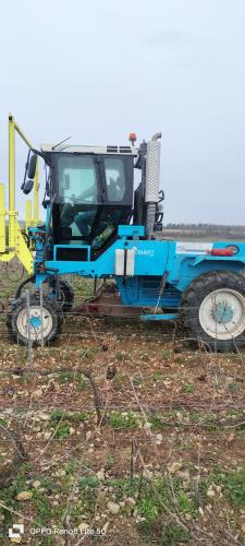 Le prestataire avec son enjambeur , il est venu broyer les andains de sarments. |