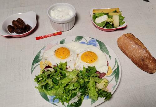 Bonjour, Aujourd'hui la pluie est de nouveau de retour 😭😭 A midi j'ai mangé une salade mâche, avec 4 coeur d'artichaut, 130 g de foie de porc, 1 c à s de sauce vinaigrette balsamique, 30 g de pain aux noix, 25 g de fromage. Cet après-midi je suis au club créatif. J'espère que vous allez toutes bien. Bon après midi et à bientôt. Martine 🫶🫶😍💝 |