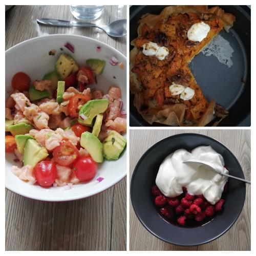 Une journée fraiche mais ensoleillée en Normandie Ce matin j'ai cuisiné Écrasé de carottes et poireaux avec moutarde Tarte potimarron chèvre et noix Endives au jambon et béchamel Un banana bread Fin d'après midi sportive car besoin de me vider la tête. Pour ma part ce serait aussi du pain le matin car 30g je trouve que c'est peu. Pour le reste pas de soucis. Je fais beaucoup d'équivalences. Roxane... Tu peux donner ta recette à la diététicienne pour qu'elle te donne l'equivalence😉😁 Je vous souhaite une douce nuit et je vous partage ma tarte au potimarron😋 |