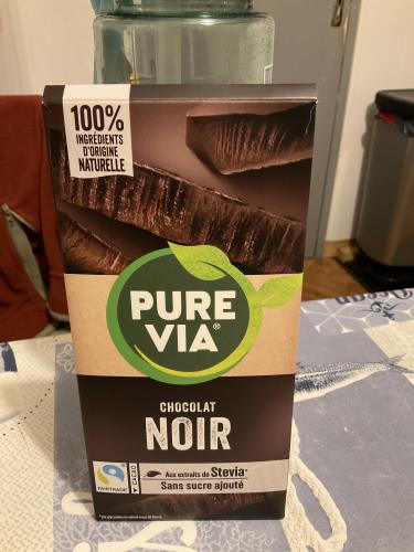 Hello tout le monde En réponse à ta question Liliane, c’est la marque pure via et j’ai pris du chocolat noir aux extraits de stevia sans sucre ajouté. À ne pas abuser tout de même !! Ingrédients : pâte de cacao , édulcorant : erythriol, beurre de cacao, inuline, caca ou maigre en poudre, émulsifiant: lécithine, édulcorant: glycosides de stéviol issus de stevia , arôme naturel de vanille, Caca:60% minimum dans le chocolat noir. Peux contenir des traces de lait, soja, fruits à coque, sésame. On verra ce qu’en pense, le docteur Cohen Bonne semaine |